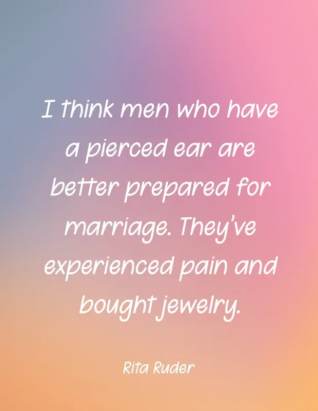 9. 'Luulen, että miehet, joilla on lävistetty korva, ovat paremmin valmistautuneita avioliittoon. He ovat kokeneet kipua ja ostaneet koruja. ' - Rita Rudner