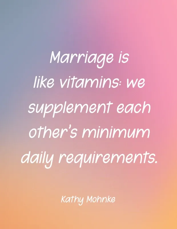 77. Avioliitto on kuin vitamiineja: täydentämme toistensa vähimmäisvaatimuksia. - Kathy Mohnke