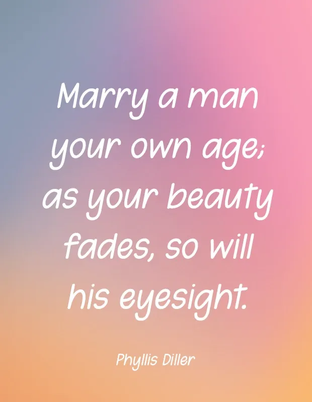 93. 'Mene oman ikäisen miehen kanssa; Kun kauneutesi haalistuu, niin hänen näkökykynsä. ' - Phyllis Diller