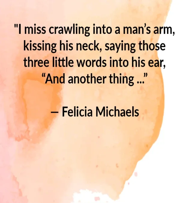 15. 'Kaipaan indeksointia miehen käsivarteen suudella hänen kaulaansa sanomalla nämä kolme pientä sanaa hänen korvaansa' ja toinen asia ... ' - Felicia Michaels
