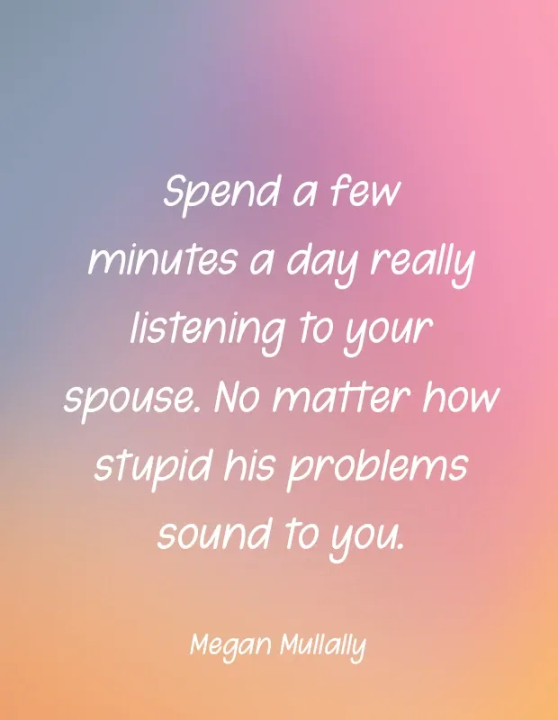 21. 'Vietä muutama minuutti päivässä todella kuuntelemalla puolisosi. Ei ole väliä kuinka tyhmä hänen ongelmansa kuulostavat sinulle. ' - Megan Mullally