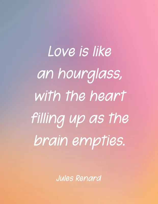 56. Rakkaus on kuin tiimalasi, jonka sydän täyttyy aivojen tyhjentäessä. - Jules Renard