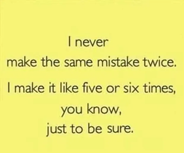 104. 'En koskaan tee samaa virhettä kahdesti. Teen sen kuin viisi tai kuusi kertaa tiedät vain ollaksesi varma. '