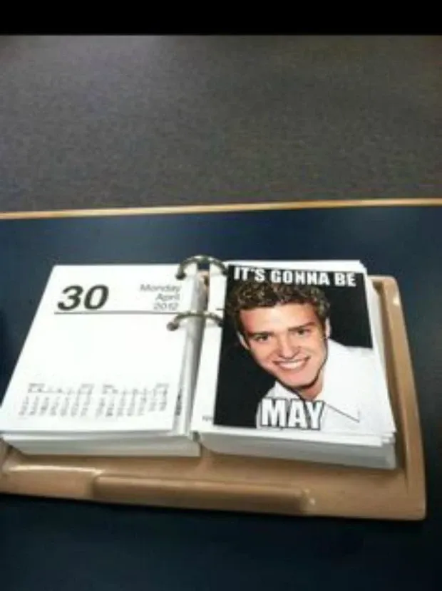 Maaliskuussa 2012 Nairobi-Blue Tumblr -blogi lähetti valokuvan huhtikuun kalenterista, jossa oli kuva Timberlakesta päätytekstillä Se tulee olemaan toukokuu. Suosittu online -lehden BuzzFeed postitti saman kuvan seuraavana päivänä.