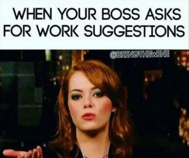Joten tässä on joitain hauskoja meemejä työstä, joihin jokainen työntekijä voi liittyä jossain vaiheessa uransa. Nauraa tänään ja ehkä on joitain meemiä, jotka voit tuoda toimistoon jakamaan kollegoidesi kanssa saadaksesi luovuuden virtaavan toimistossa, koska kuten tiede sanoo, sarkasmi kipinä luovuutta. Joten miksi et käytä sitä?