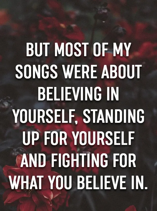 Itse seisominen vie luottamusta ja tiedät, että olet täydellinen sellainen kuin olet. Me kaikki ansaitsemme elämässämme ihmisiä, jotka rakastavat ja vaaliamme meitä ja vaikka kaikkien elämässä on kohta, jossa tunnemme itsemme yksin (hajoamiset jne.) Tiedät, että on aina parempi puoli. Kuten Katey Perry sanoi hirmumyrskyn jälkeen, on sateenkaari.