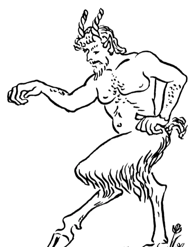 Se comically hideous male nature spirit has the body of a human with the ears and tail of a horse.