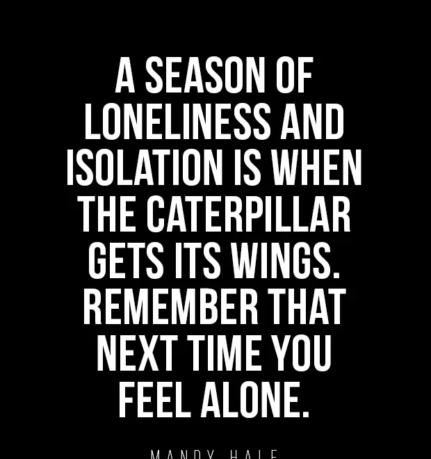 70. Yksinäisyyden ja eristyksen kausi on silloin, kun toukka saa siipiään. Muista, että seuraavan kerran tunnet itsesi yksin. Mandy Hale