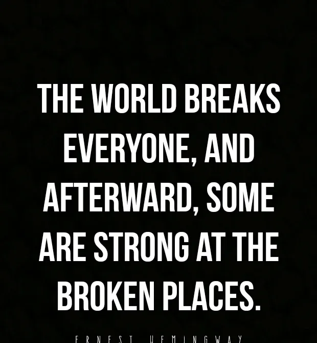 45. Maailma rikkoo kaikki ja myöhemmin jotkut ovat vahvoja rikkoutuneissa paikoissa. - Ernest Hemingway