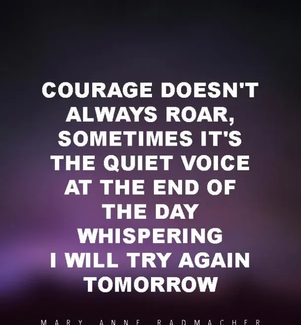 3. Rohkeus ei aina mösöi joskus, se on hiljainen ääni päivän päätteeksi kuiskaa 'Yritän uudelleen huomenna - Mary Anne Radmacher
