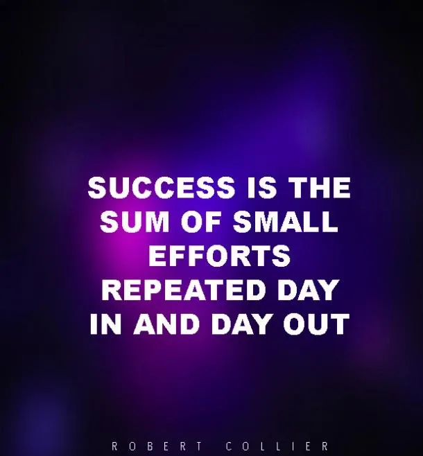 4. Menestys on pienten ponnistelujen summa toistuvasti päivä päivältä. - Robert Collier