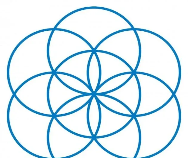 Elämän siemen is related to the Flower of Life and the Tree of Life representing creation. It has overlapping circles albeit fewer than the Flower of Life. The circles create the image of a single flower.