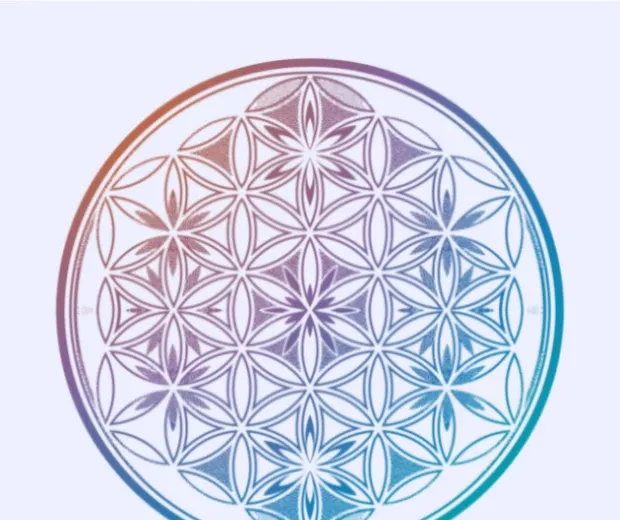 Elämän kukka on ympyrä, jonka sisällä on päällekkäisiä ympyröitä. Se symboloi luomista ja yhteyksiämme yksittäiseen lähteeseen. Toistuva kuvio muistuttaa useita kukkia, jotka edistävät paranemista ja sisäistä rauhaa.
